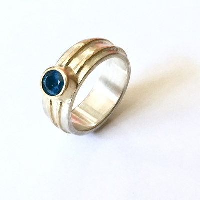 My work is organic and sculptural. Textured with hammer marks or imprinted with the delicate veins of a leaf, each piece is unique. I use semi-precious stones as well as simple found objects such as pebbles or sea glass which are transformed into elegant new forms.
